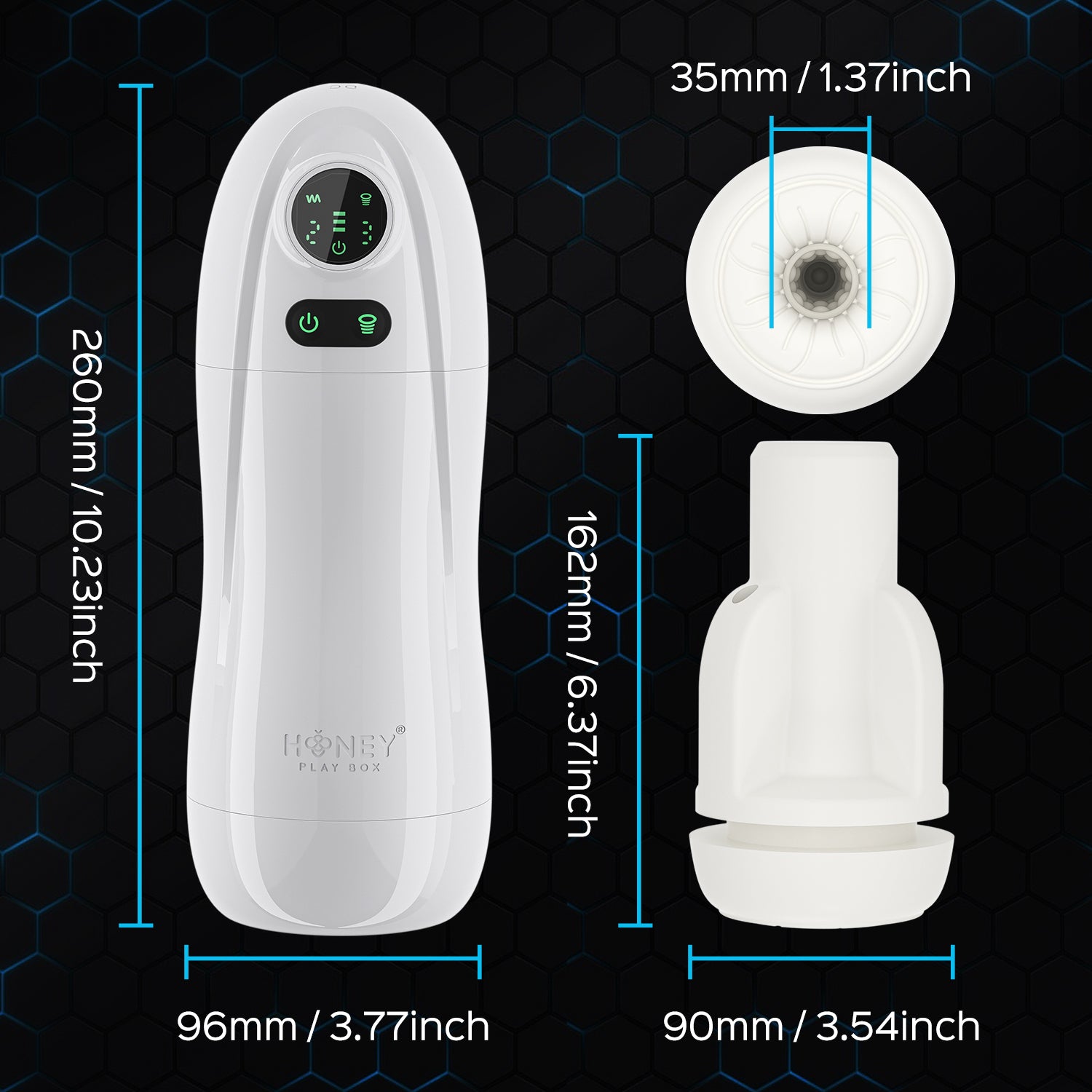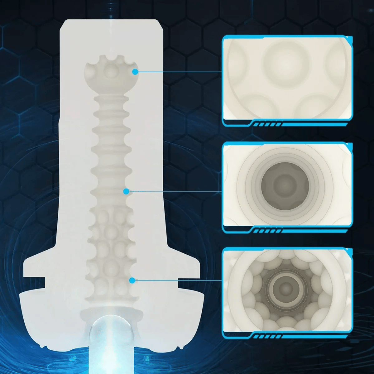 Choose from 9 vibration settings and 5 suction modes to create the perfect combination for your needs. The sleeve features raised beads for added texture, while the extended tunnel and wide opening comfortably accommodate most sizes.