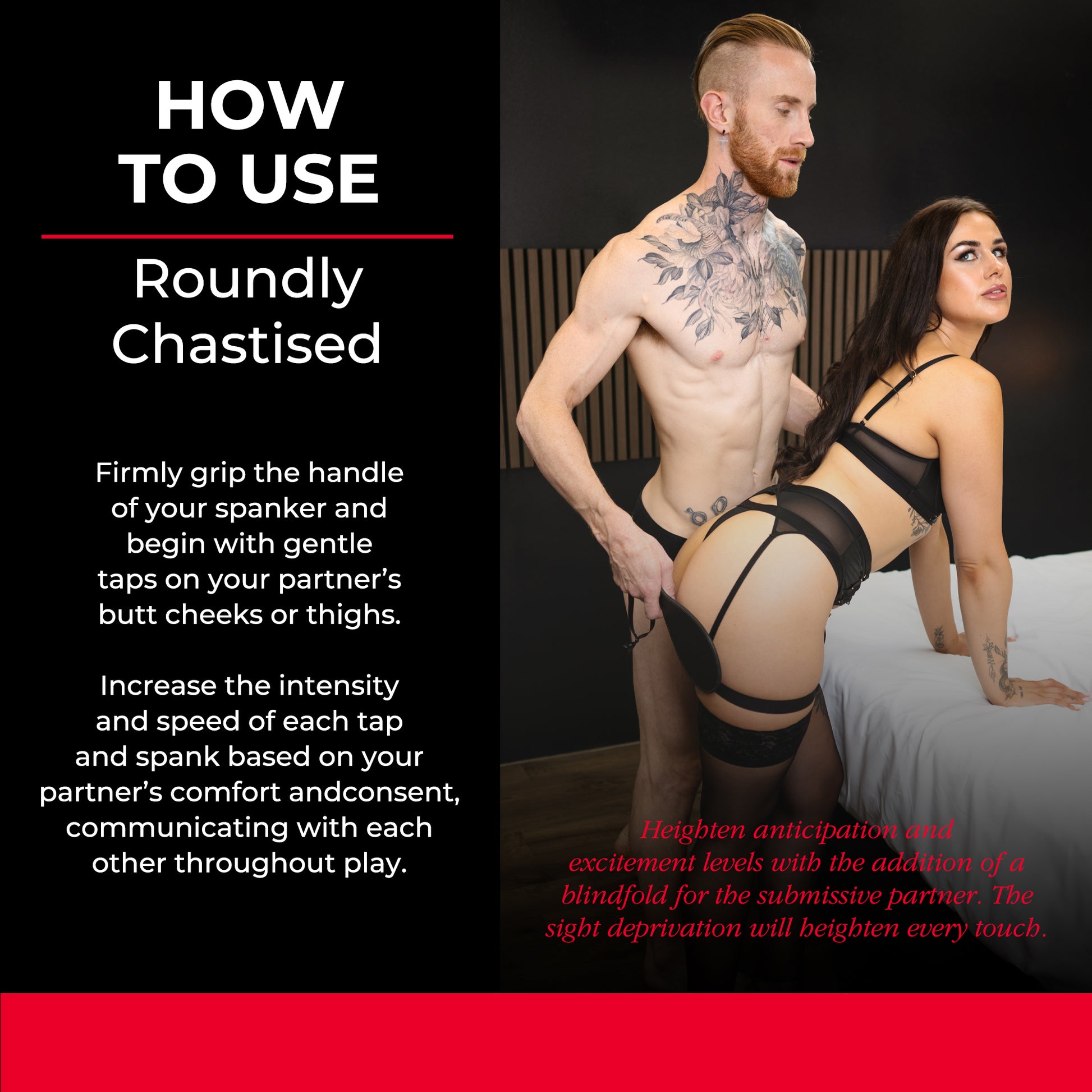 Made from durable, easy-to-clean faux leather, this paddle is both practical and stylish. Perfect for couples looking to explore spanking and sensation play, the Roundly Chastised Paddle delivers a powerful blend of impact, pleasure, and playful authority.